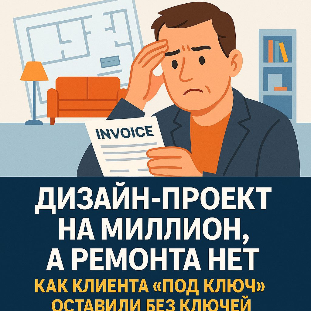 На что ему сказали буквально следующее: «Вот наш дизайнер, она с нами работает. Всё оформит, сделает вам проект». Клиент уточнил: «У меня весь бюджет — 1,5 миллиона. Мы в него уложимся?» Ответ был однозначный: «Да, конечно». Ни слова о том, что проект делается отдельно, что расчёт сметы будет потом, и что итоговая стоимость может вырасти в два раза.