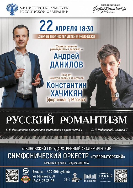 Русский романтизм 🗓️ 22 апреля в 18:30 📍Дворец творчества детей и молодёжи В программе: Сергей Васильевич. Рахманинов. Концерт для фортепиано с оркестром №1 Петр Ильич Чайковский. Сюита №3 Подробнее Скидка 10% по промокоду культура 💝 #22апреля25