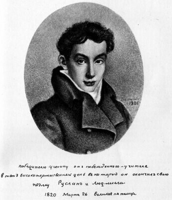 "Победителю ученику от побеждённого учителя в тот высокоторжественный день, в который он окончил свою поэму "Руслан и Людмила". 1820, марта 26, Великая пятница".