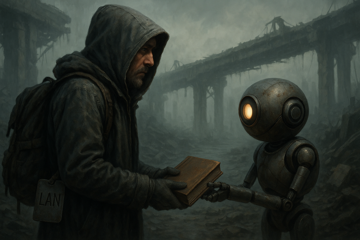 Его звали Лан. Или он так себя назвал. После Великого Ухода имена перестали иметь значение. В мире не было тех, кто мог бы их помнить. Он сам себе выбрал имя, вырезал его на металлической пластине, когда-то бывшей частью дрона, и прицепил к рюкзаку. Этот жест был его последней надеждой — быть узнанным.