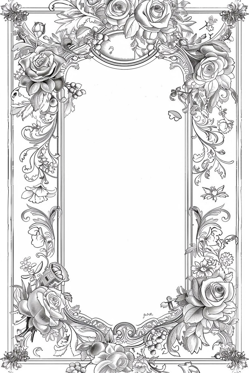 Создано на основе запроса: simple floral mandala border frame with Viennese details, thin line art, empty center space, designed for adding text inside, border only around the edges of an A5 page, frame width maximum 2cm, includes light baroque flourishes, Viennese roses, coffee cups, ferris wheel elements, in coloring book style, black outline only, white background --- Автоперевод: Простая пограничная рамка с цветочной мандалой с венскими деталями, тонким искусством линии, пустое центральное пространство, предназначенное для добавления текста внутри, границы только по краям страницы A5, максимум ширины рамы 2 см, включает в себя легкие расцветы барокко, венские розы, кофейные чашки, элементы колеса, в стиле раскраски, только черный набросок, белый фоновый Необычно получилось? 🤔 https://dzen.ru/id/65c0c65c86e4f837c27b24d7 #ИИ #AI #нейросеть #midjourney #art