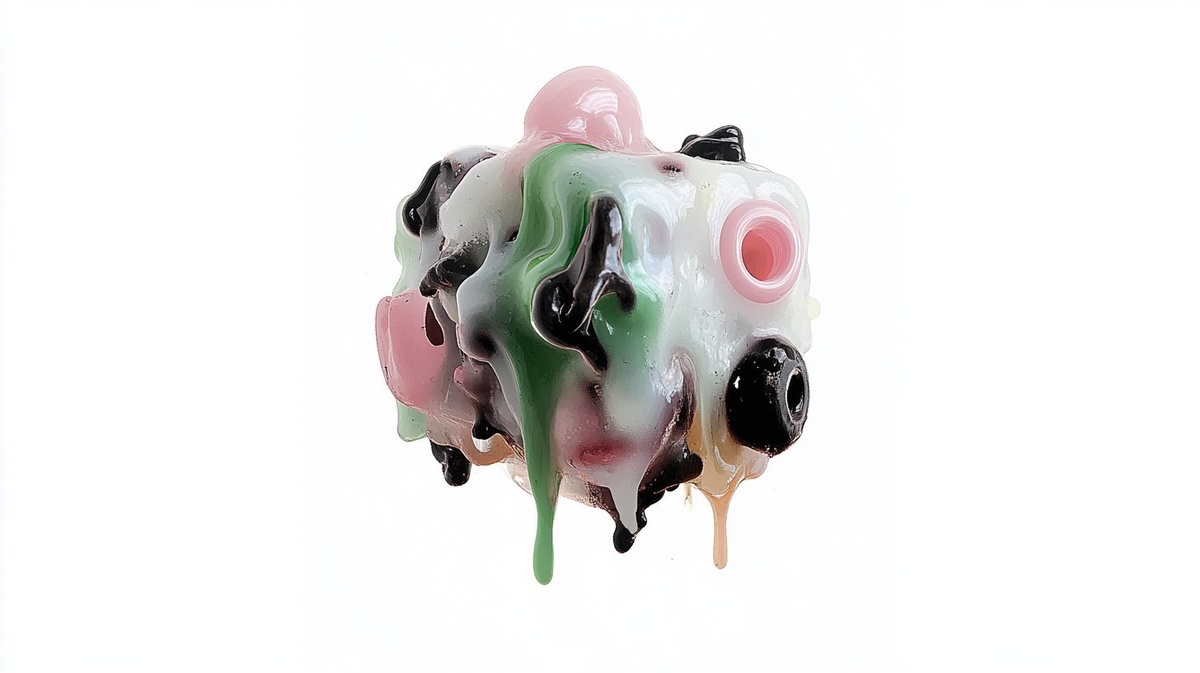 Создано на основе запроса: a cube made of melted glass, dripping, with pink rubber orificies --- Автоперевод: куб из расплавленного стекла, капающий, с розовыми резиновыми отверстиями Неплохо вышло? 🤔 https://dzen.ru/id/65c0c65c86e4f837c27b24d7 #ИИ #AI #нейросеть #midjourney #art