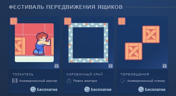 Халява в Steam: бесплатно можно урвать анимированную аватарку, стикер и рамку Всё в честь фестиваля передвижения ящиков. 🟠Хватаем бесплатно тут: store.steampowered.com/points/shop/app/3099280; 🟠Страница фестиваля со скидками: store.steampowered.com/category/box-pushing. Подробнее: https://hard-tm.su/threads/87104/ 🕹HARD-TM — Подписаться