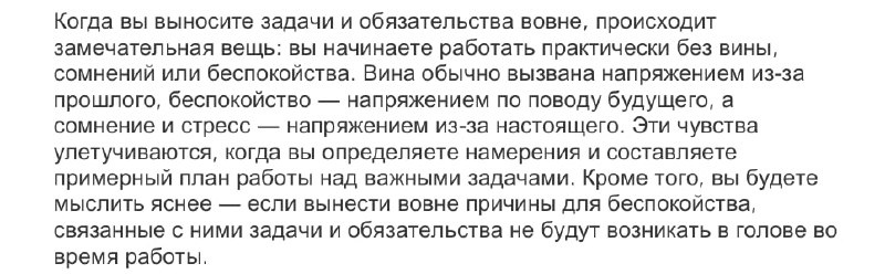 Мысль первая: выписывание задач на бумагу значительно снижает загрузку нашего головного процессора и позволяет дольше работать в фокусе.