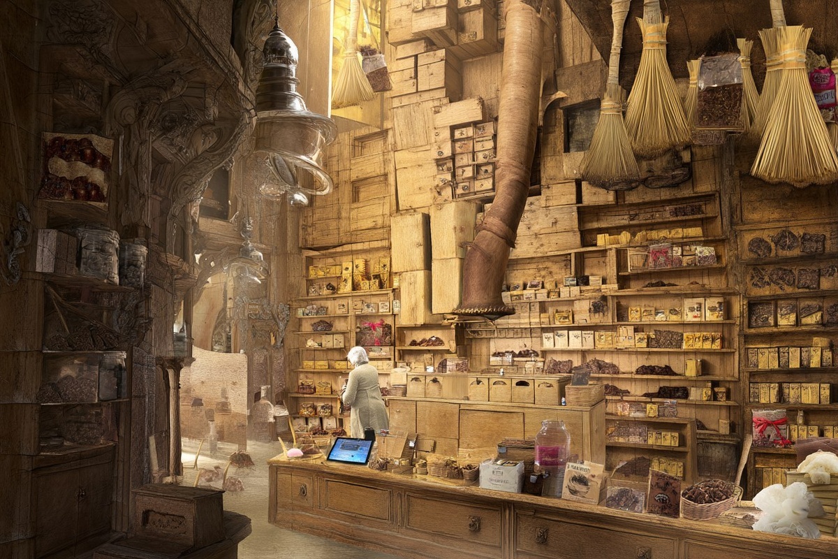 Создано на основе запроса: conceptual art paintings style, surrealism in color, Brownies and Broomsticks ,A Magical Bakery Mystery, hdr