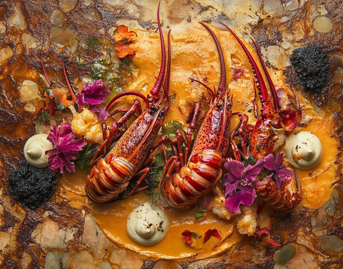 Создано на основе запроса: decadent french haute cuisine crustacean seafood platter, several crawfish and lobster and heavy garnish, style