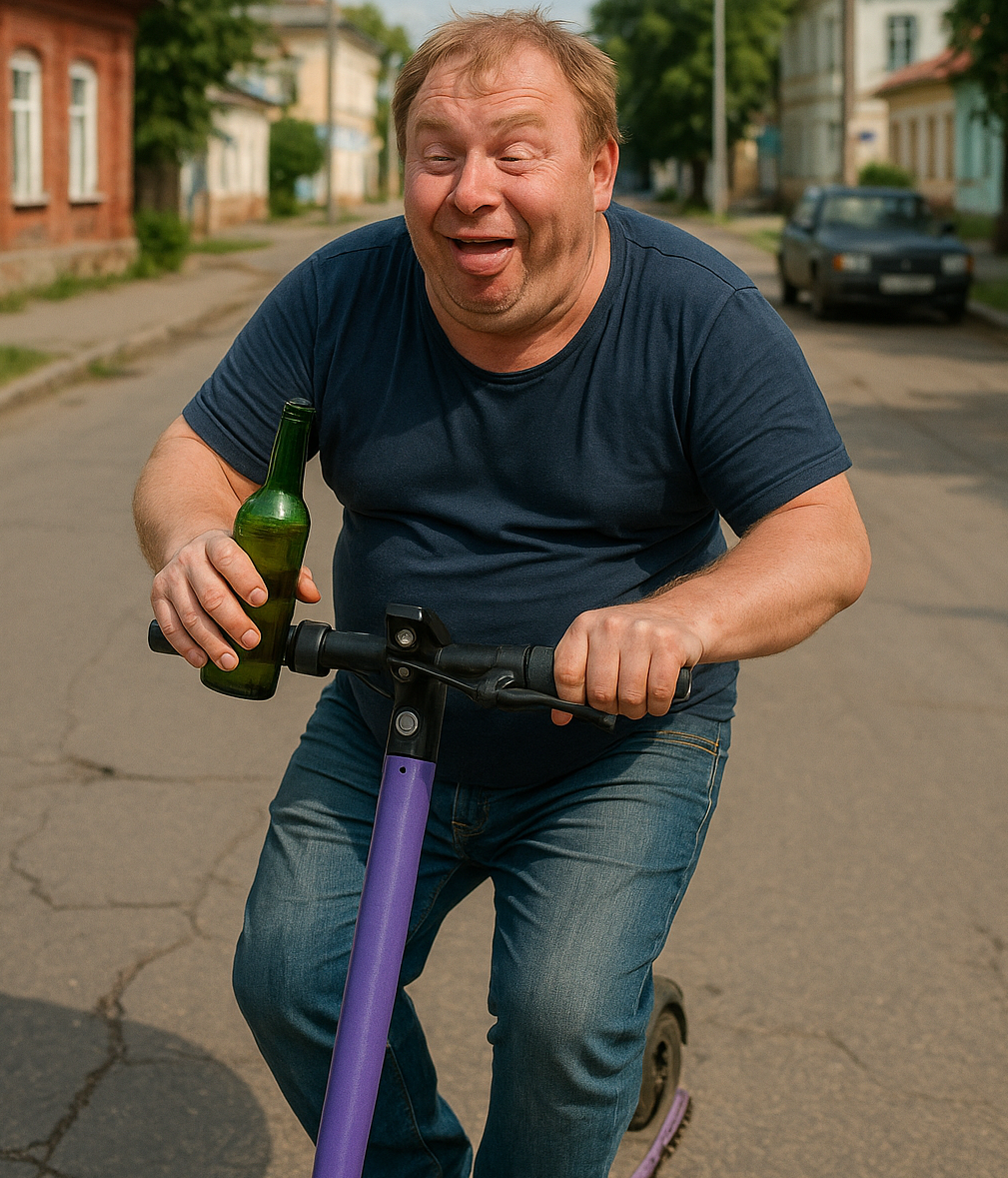 Александр лихо запрыгнул на самокат и помчался по улицам Советского, вихляя как заправский слаломист. К несчастью, его странная траектория привлекла внимание сотрудников ДПС.