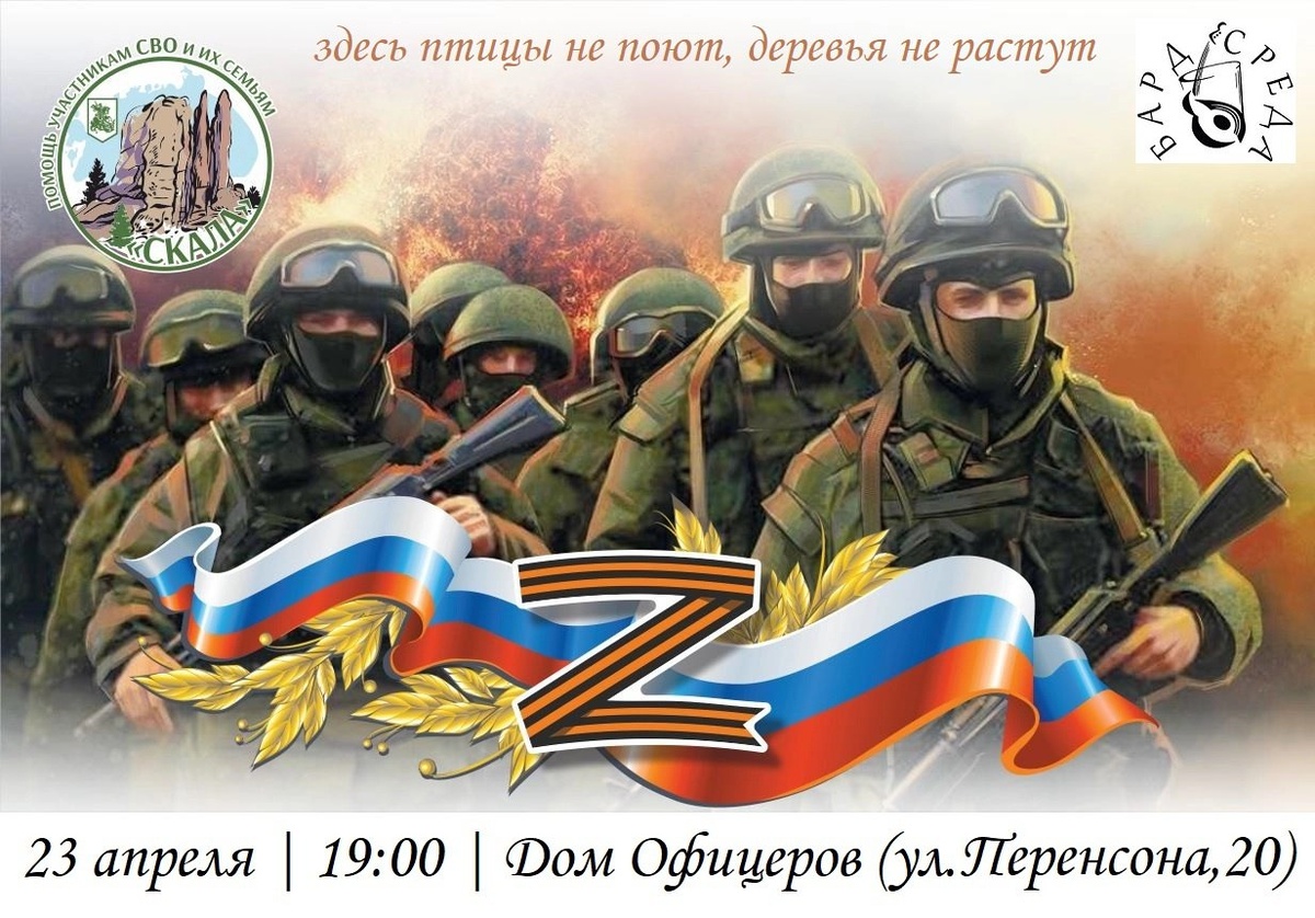 В среду, 23 апреля, в 19 часов в Красноярском Доме офицеров (улица Перенсона, 20) пройдёт благотворительный концерт проекта «Бард-среда» в