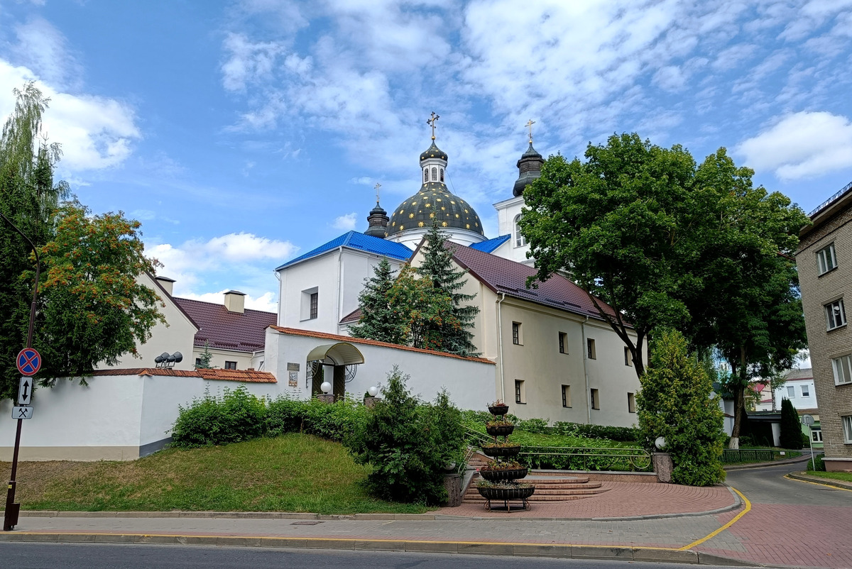 По пути нам попадается Свято-Рождество-Богородичный ставропигиальный женский монастырь. Ставропигиальный – значит, управляемый патриархом, а не местной епархией. Когда-то давно здесь стоял Пречистенский храм, сначала деревянный, потом каменный, и, возможно, он был ровесником Коложской церкви. В начале XVII века церковь стала униатской, при ней поселились несколько монахинь униатского базилианского ордена. Помнится, к этому ордену относились два монастыря, мужской и женский, в Минске.