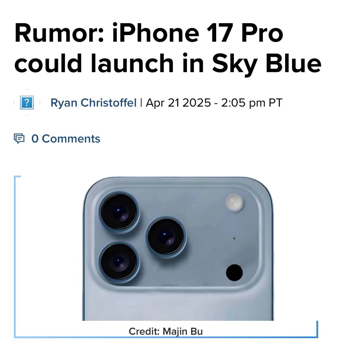 iPhone 17 Pro выпустят в голубом цвете. Более того, инсайдеры сообщают, что Apple хочет построить целую кампанию вокруг голубого айфона.