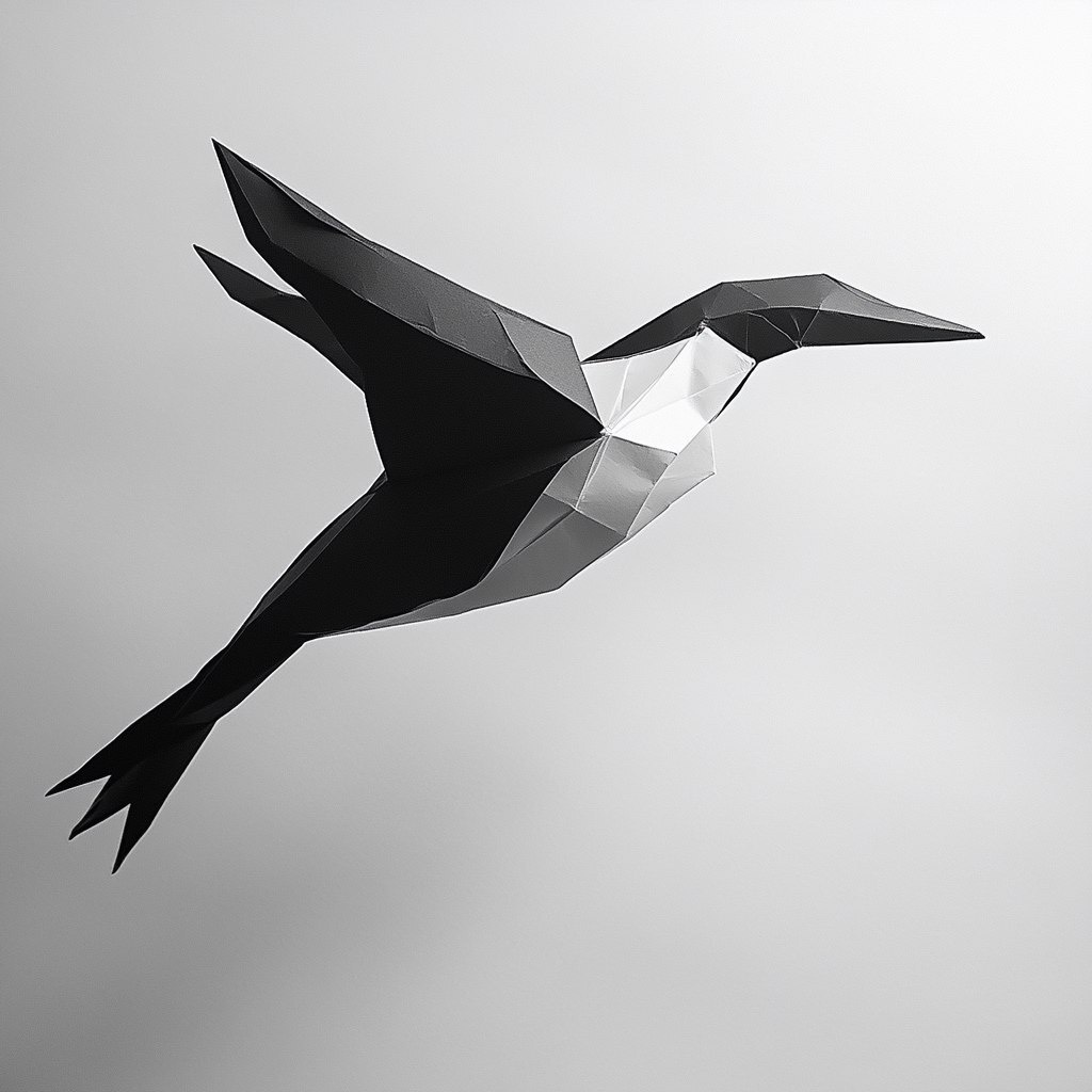 Создано на основе запроса: origami dive, black and White, pure, logo, freedom --- Автоперевод: оригами дайд, черно -белый, чистый, логотип, свобода Как тебе вариант? 🤔 https://dzen.ru/id/65c0c65c86e4f837c27b24d7 #ИИ #AI #нейросеть #midjourney #art