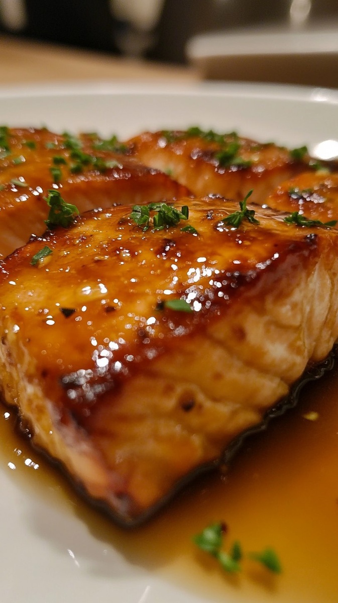 Создано на основе запроса: Title: Honey Garlic Glazed Salmon | Close-up Shot right view, taken by a photographer with a high quality camera
