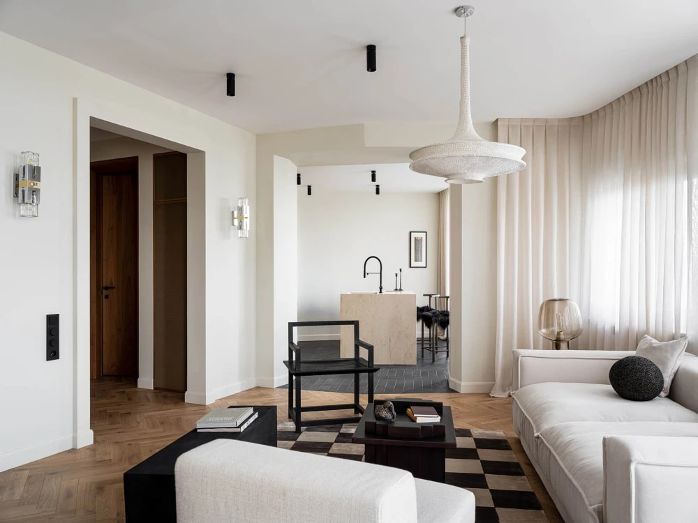 Вы когда-нибудь задумывались, как превратить проблемное пространство в функциональное и стильное? Эта статья — не просто рассказ о проекте, а руководство для тех, кто верит, что красота и практичность не противоречат друг другу. Вы узнаете, как дизайнеры ALDO&ALDO и бренд Modenature справились с асимметричной квартирой, создав интерьер, где каждая деталь работает на комфорт и эстетику. Елена и Ярослав Алдошины (студия ALDO&ALDO) вновь доказали, что даже самые сложные пространства можно преобразовать в гармоничные. Их новый проект — двухкомнатная квартира для молодого предпринимателя — изначально представляла собой лабиринт с семью окнами, расположенными на разной высоте. Несимметричные стены, отсутствие чётких зон и дисбаланс естественного света стали отправной точкой для поиска идеальных пропорций. Ключевая задача: сохранить индивидуальность помещения, подчеркнув его архитектурные особенности, но при этом добавить функциональности. Решение нашлось в сочетании строгой геометрии и мебе