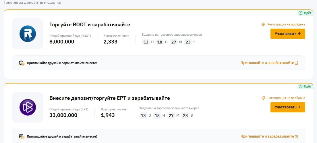 🍸 Друзья, на Bybit новые раздачи: 8,000,000 ROOT и 33,000,000 EPT