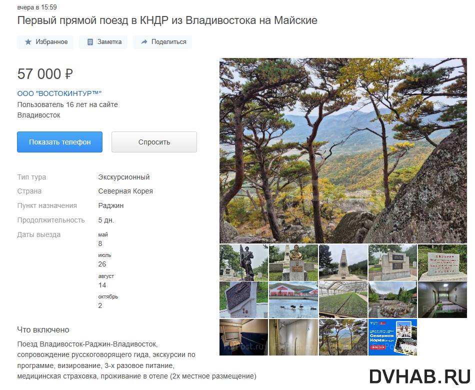 Ранее в КНДР можно было отправиться самолетом в составе туристической группы, а теперь и на железнодорожные поездки фирмы начали принимать заявки. Большого ажиотажа не наблюдается, однако определенным категориям хабаровчан такие предложения очень интересны.