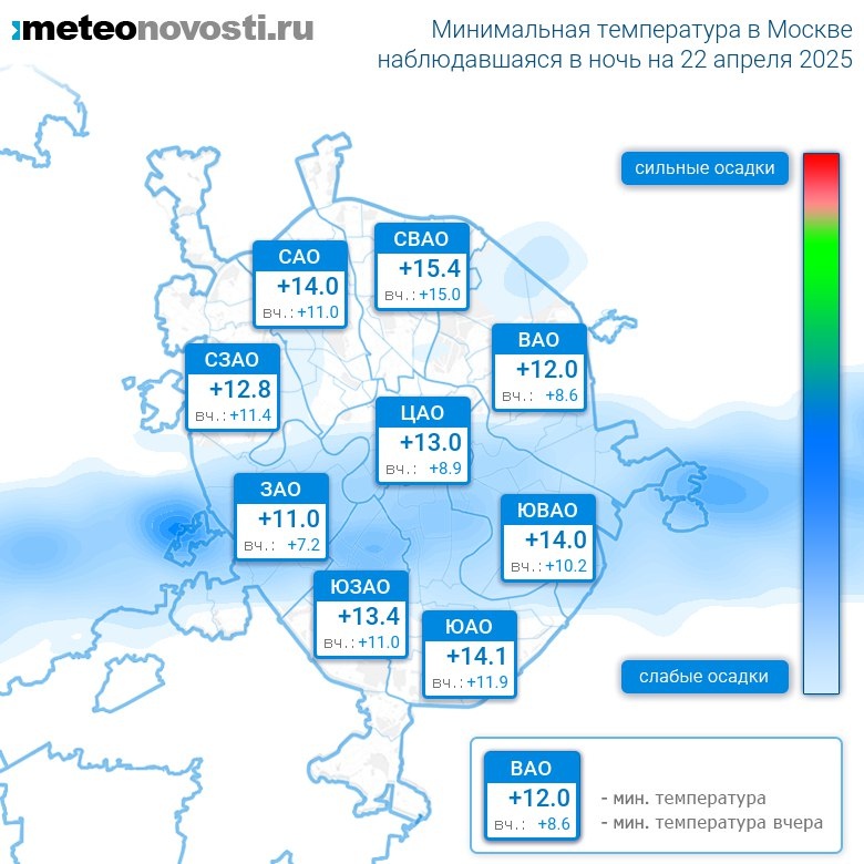 #за12часов #ночь Прошедшая ночь на 22 апреля оказалась на 3.7°C теплее предыдущей