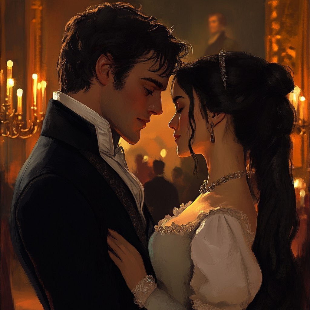 Создано на основе запроса: Mr. Darcy is a vampire lord in love with Elizabeth Bennet, they are staring at each other's eyes nearly kissing. Romantic atmosphere, regency ball, candlelight, Pride and Prejudice, cinematic --- Автоперевод: Мистер Дарси - лорд -вампир, влюбленный в Элизабет Беннет, они смотрят на глаза друг друга, почти целуясь. Красиво вышло? 🤔 https://dzen.ru/id/65c0c65c86e4f837c27b24d7 #ИИ #AI #нейросеть #midjourney #art