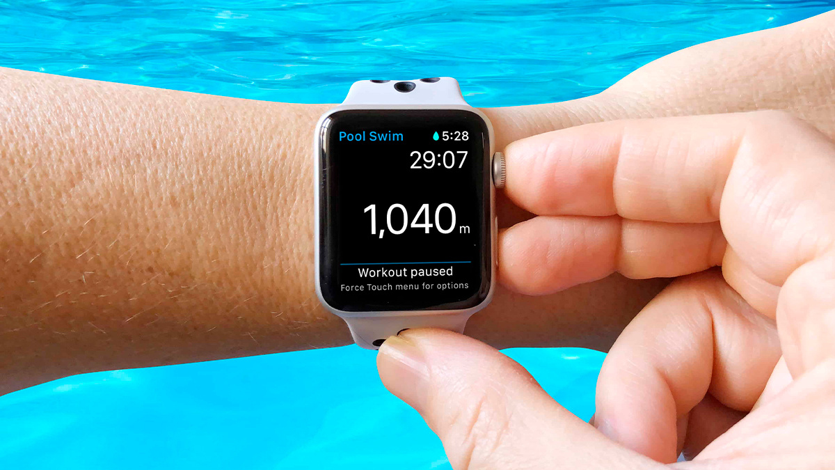 После завершения тренировки необходимо повернуть или нажать и удерживать колесико Digital Crown, чтобы разблокировать экран и удалить воду из динамиков.