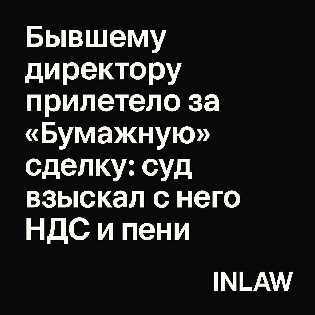 #интереснаяпрактика ⚡️ Бывшему директору прилетело за "бумажную" сделку: суд взыскал с него НДС и пени В одном из дел о банкротстве всплыла история о том, как директор компании провел мнимую сделку с фиктивным контрагентом, а теперь расплачивается — из собственного кармана. Налоговая выявила, что организация предъявила к вычету НДС по поддельным документам. Эти счета-фактуры были от контрагента, который, как выяснилось, не вел никакой реальной деятельности. Налоговая доначислила НДС, пени и штраф. После этого конкурсный управляющий включил сумму в реестр требований и подал иск к бывшему директору, уверяя: именно он организовал фиктивный документооборот и тем самым нанес ущерб компании. Директор пытался уйти от ответственности: мол, когда налоговая проверка прошла, он уже не работал, и вины его в этом нет. Но суды трёх инстанций с ним не согласились. Они указали: - нарушения были допущены в период, когда он руководил компанией; - он должен был понимать, что делает, ведь сделки закл