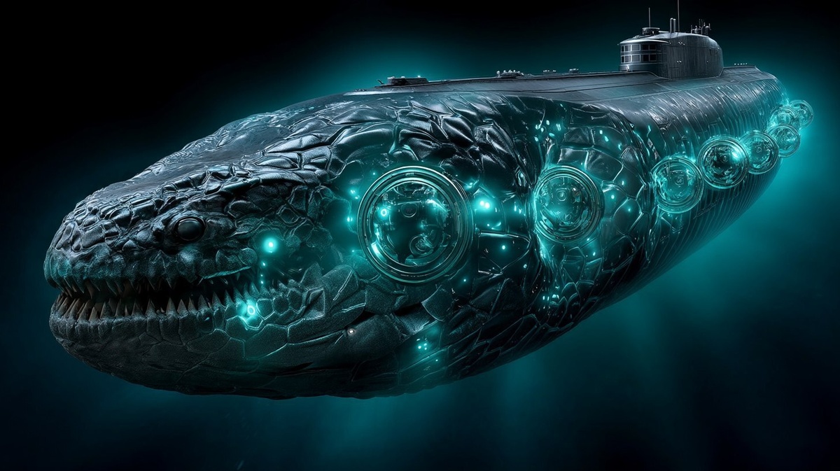 Создано на основе запроса: Gigantic Loch Ness Monster coils protectively around a damaged stealth submarine drifting in a glowing abyss. The creature's scales shimmer with bioluminescent pulses while repair drones buzz quietly, watched by its ancient gaze. --- Автоперевод: Гигантские катушки монстров с монстром защищаются вокруг поврежденной стелс -подводной лодки, дрейфующей в светящейся пропасти. Интересно выглядит? 🤔 https://dzen.ru/id/65c0c65c86e4f837c27b24d7 #ИИ #AI #нейросеть #midjourney #art