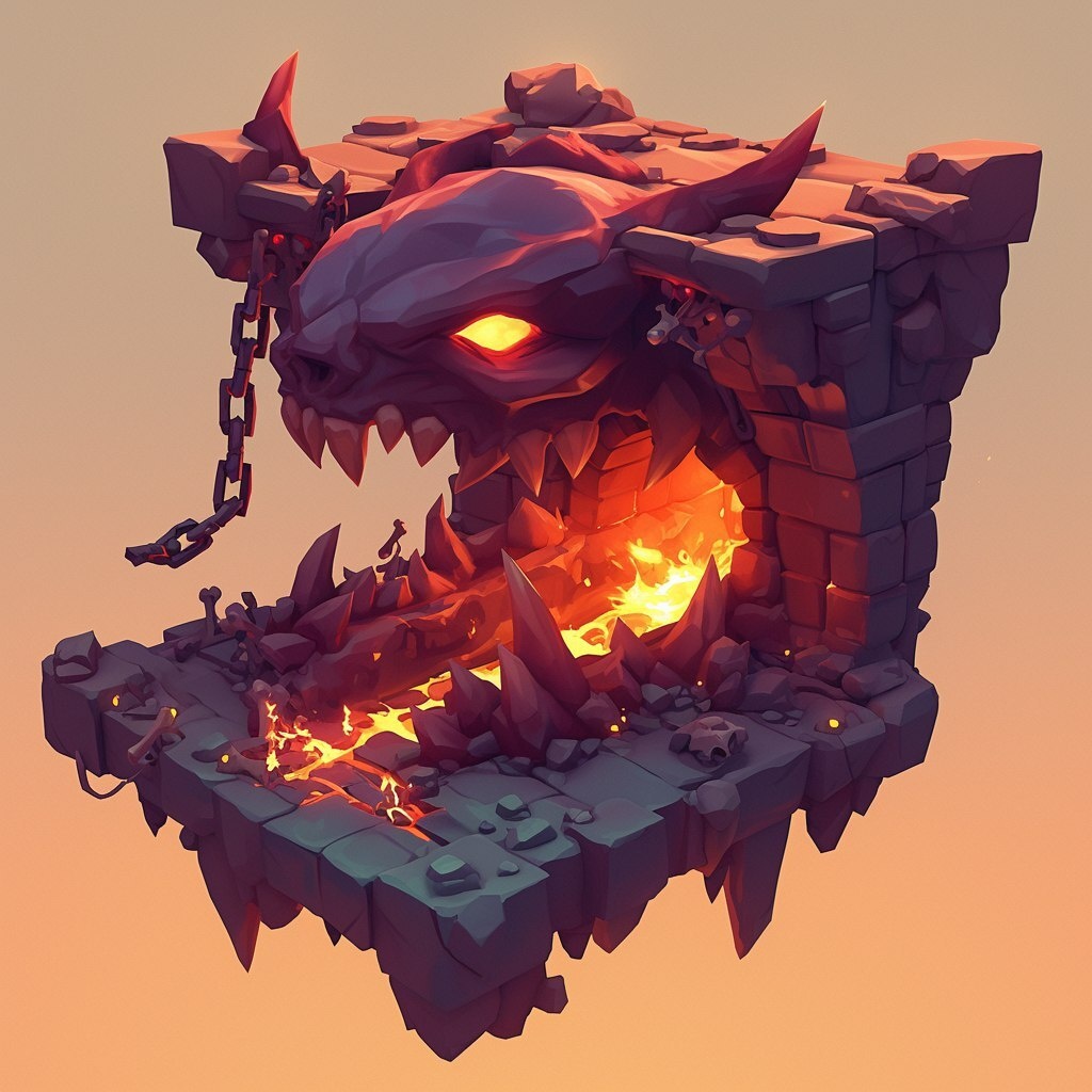 Создано на основе запроса: Infernal Tunnel land icon, 3d stage, cartoon illustration, levitation