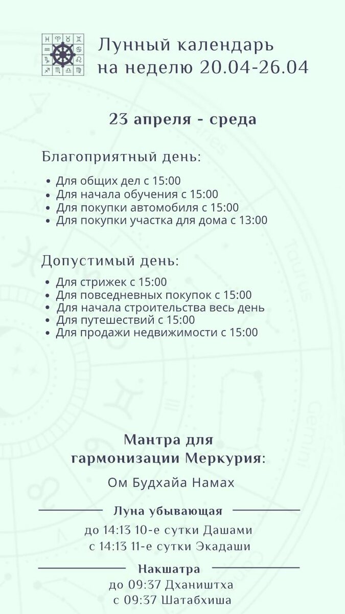 Лунный календарь на завтра