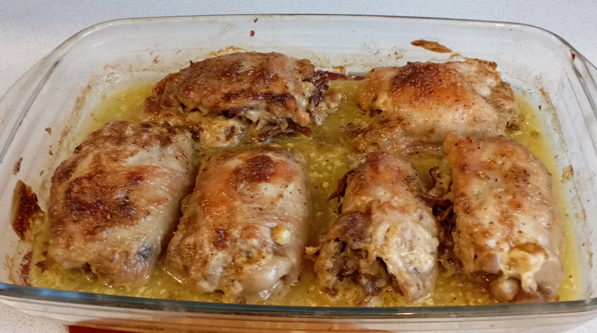 Делюсь рецептом. Фаршированные куриные бёдра с грибами и сыром.