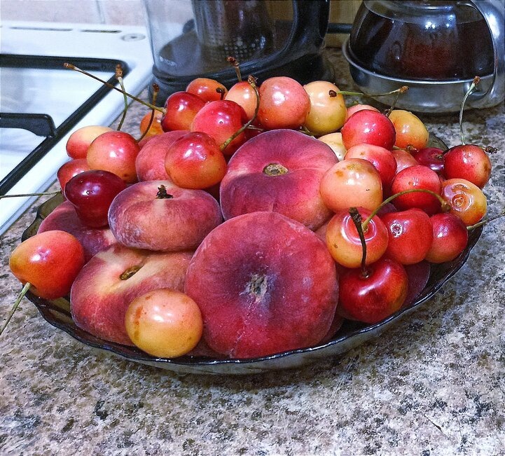 Надо ли говорить, что такой огромной и сладкой черешни мы не видели и не ели никогда в жизни. В наших северных магазинах такого "деликатеса" вообще никогда не продавали. Я даже не знала, что она бывает подобной расцветки, и думала, что черешня всегда исключительно такого же цвета, как вишня.