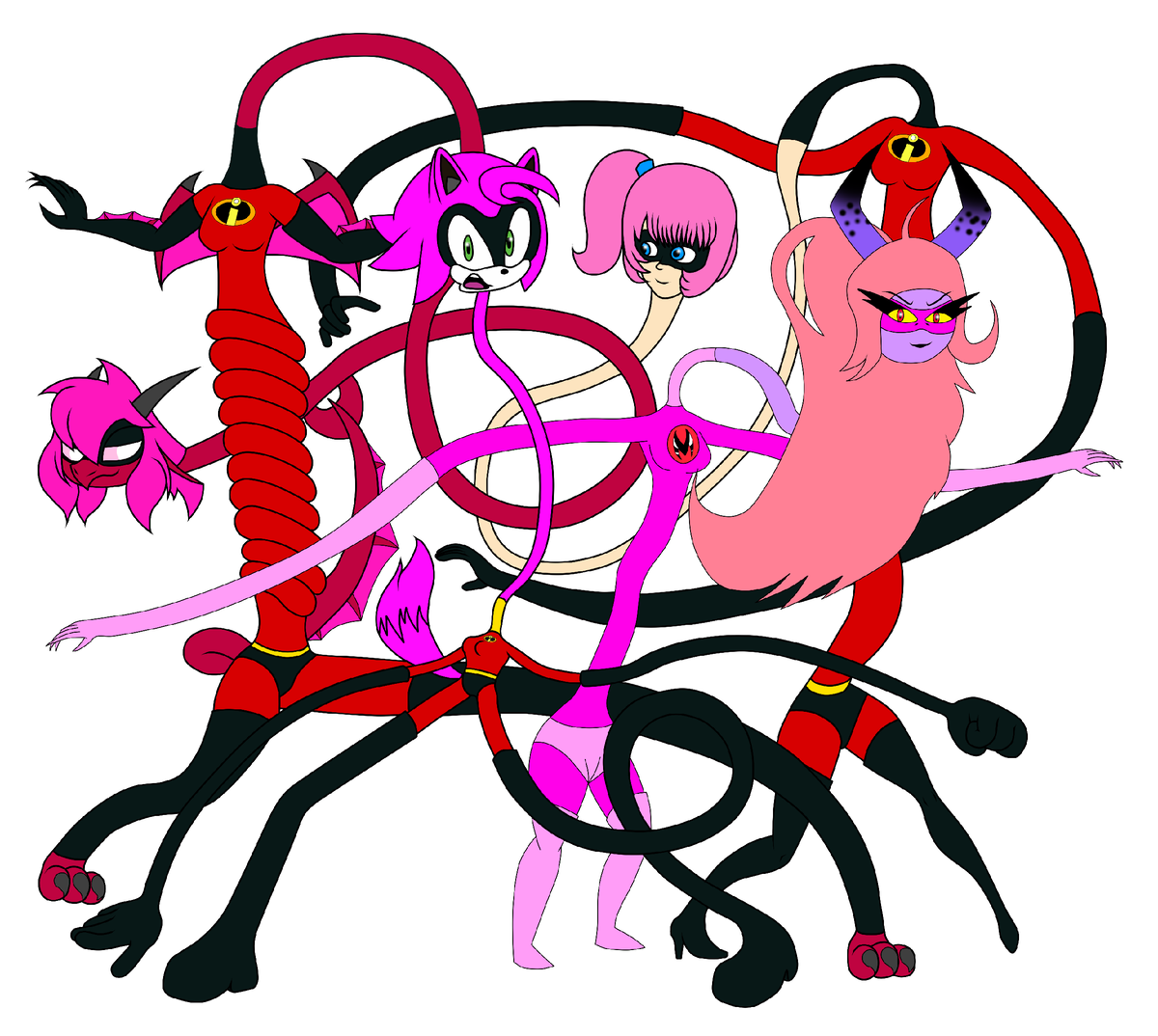 Эластичная Эмили или же Эласти-Эмили, как она и названа в оригинале. Персонаж, а вернее версии этого персонажа были созданы и придуманы пользователем, а вернее пользовательницей, так как она женщина — SamuelYan4 на DeviantArt. Отдельная также благодарность ему самому за то, что он поделился со мной нужными информациями о персонаже и её альтернативных версиях, о которых я хочу прямо сейчас рассказать здесь. Супергероиня, созданная на основе как не трудно догадаться персонажа Эластики. Имеется на данный момент шесть версий персонажа, которых SamuelYan4 придумал на данный момент. И начнём по порядку с самой первой версии.