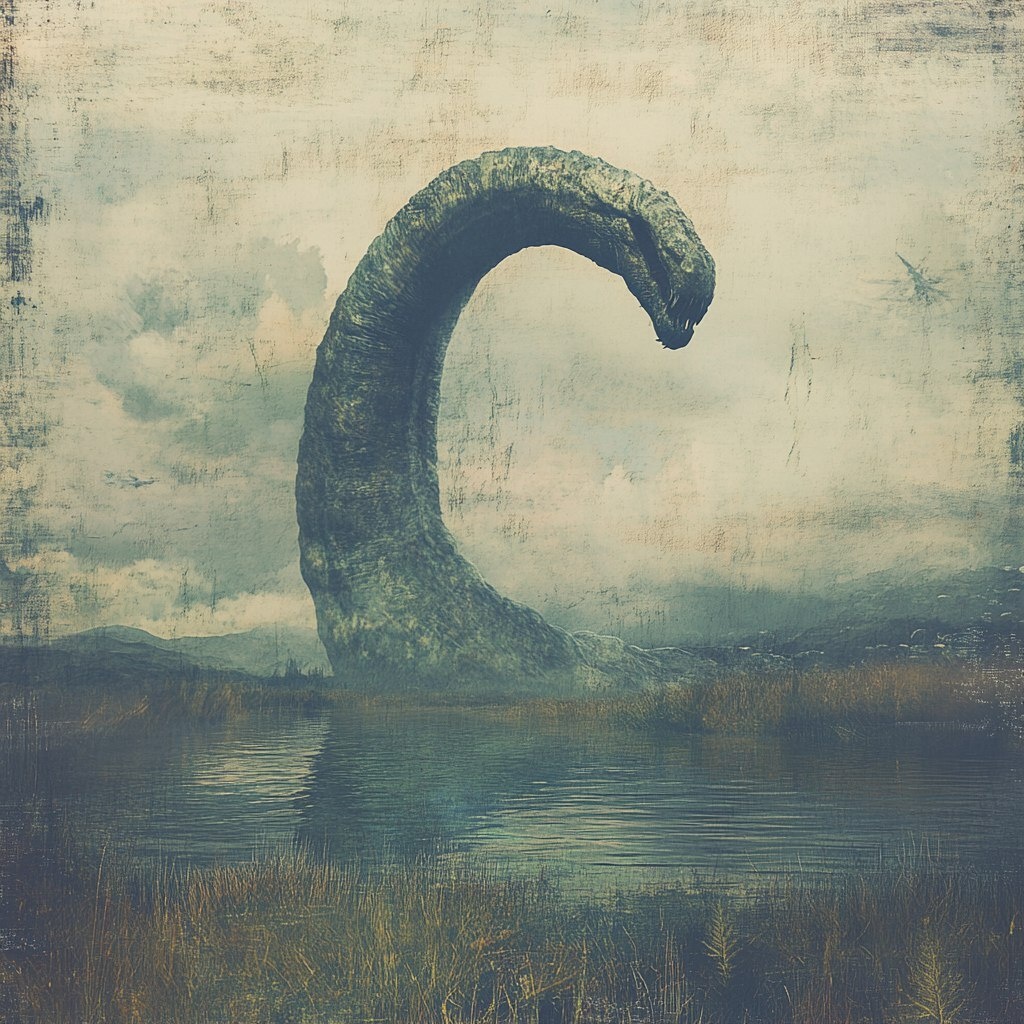 Создано на основе запроса: loch Ness monster of Proxima Centauri b, in the style of pastoral cyberpunk