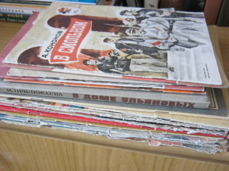 У меня сохранилось некоторое количество старых книг, которые я покажу. Не все, конечно. Некоторые "вот только вчера вот тут лежали", а теперь не находятся. А через пару дней, как назло, опять попадутся под руку. Книги разной степени облезлости и обветшалости. Зачем покажу? Просто день сегодня такой - в который меня когда-то приняли в пионеры. Я знаю, что сейчас очень многие реагируют на эту память очень неоднозначно. Что она порицается и осуждается, и пренебрежительно называется "совковой". Я терпеть не могу этого слова. А память называю исторической. У меня и моих родителей не было другого прошлого, как бы к нему не относились те, кто сейчас видят иную "верную дорогу", которой надо было идти с товарищами. Мы прошли ту. Мы читали книги о детстве Ленина, и книжный Володя Ульянов нас многому научил, как учили и все остальные книжные герои. Осталась в памяти большая дружная семья, о которой я до недавних пор читала книги детям. Сколько бы ни язвили и саркастически не ухмылялись современ