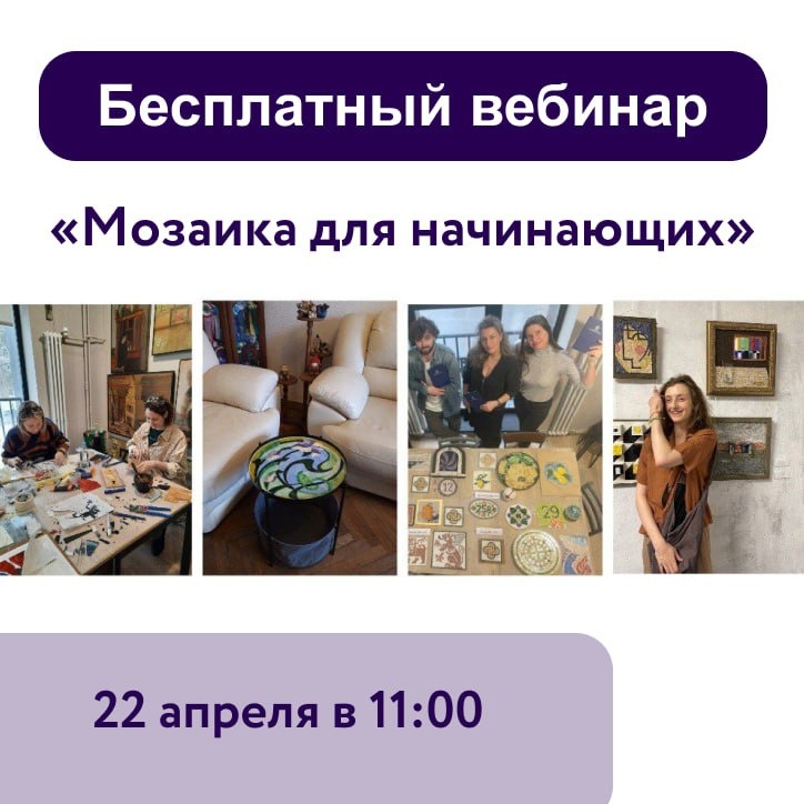 🔴 Уже сегодня в 11:00 стартует бесплатный вебинар «Мозаика для начинающих