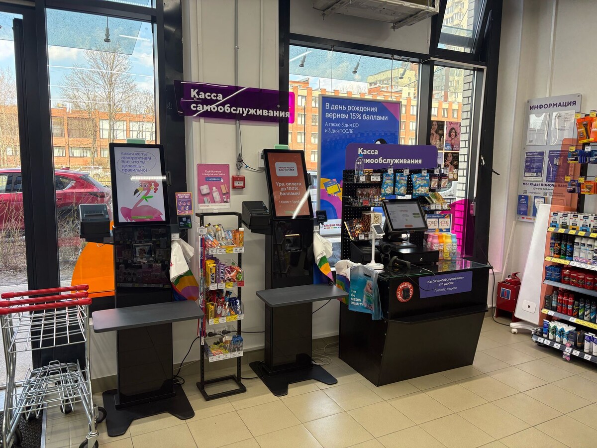 Торговая сеть «Улыбка радуги» запустила в Санкт-Петербурге пилотный проект по открытию магазинов без кассиров. Первая точка заработала по адресу улица Манчестерская, 3, строение 1. Источник: «Лента» Помещение было оборудовано двумя киосками самообслуживания и кассой-трансформером для наличных. В зоне самообслуживания установлен звонок вызова сотрудника, который может помочь покупателю. Постоянно в магазине работает только один продавец, до пилотного проекта их было трое. За три месяца тестиования торговая сеть улучшила операционную эффективность за счет снижения расходов на персонал. В целом SG&A пилотного магазина сократился с 31,8% до 23,2%. «Мы рады предложить нашим покупателям удобный формат самообслуживания. Он пользуется спросом у наших клиентов, поэтому в мае мы переформатируем ещё пять торговых точек, которые станут магазинами самообслуживания: два в Москве и по одному в Вологде, Санкт-Петербурге и Перми», — рассказал генеральный директор «Улыбки радуги» Алексей Баулин. Источни