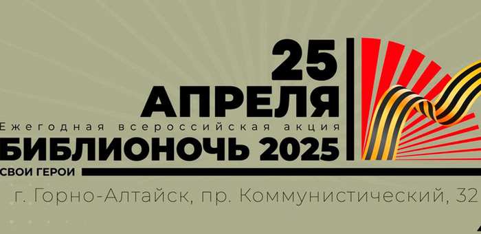 В Национальной библиотеке имени М.В. Чевалкова в Горно-Алтайске 25 апреля в 14-й раз пройдет ежегодная акция «Библионочь». В этом году она посвящена 80-летию Победы в Великой Отечественной войне и Году защитника Отечества. Как сообщили в правительстве РА, главная тема вечера – «Свои Герои». Для гостей мероприятия подготовили интеллектуальные викторины, книжные и фотовыставки, музыкальные номера и творческие мастер-классы, где можно будет создать брошь ко Дню Победы или научиться плести маскировочные сети. Желающие смогут найти информацию о своих родственниках, участниках Великой Отечественной войны, сделать фотографии на память в специально оборудованной фотозоне, прочитать любимое стихотворение о войне и многое другое. Завершится «Библионочь-2025» праздничным вечерним концертом и розыгрышем призов. Начало мероприятия – в 18:00. Вход свободный. 6+