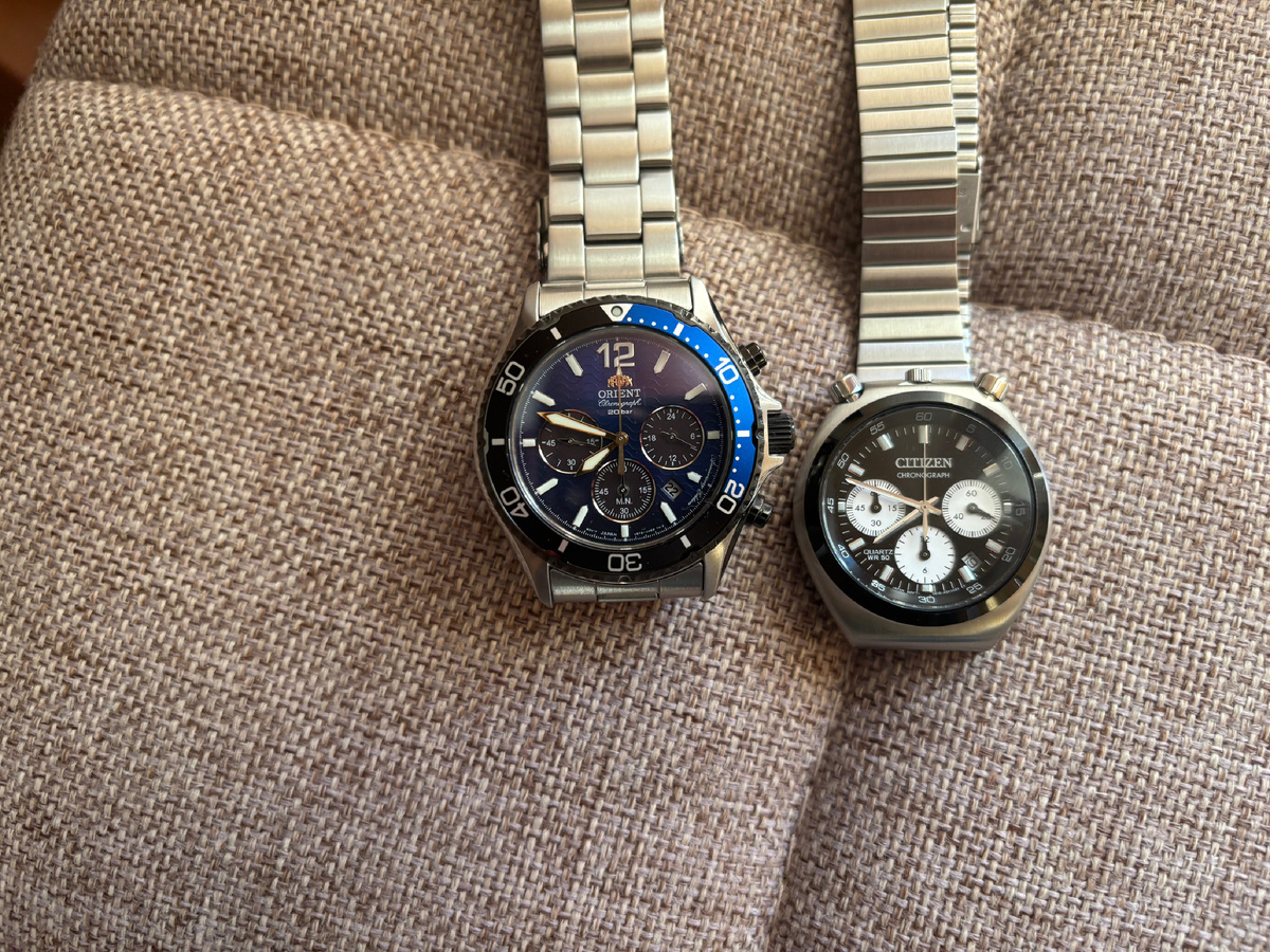 Олег купил новые наручные часы с секундомером, чтобы улучшить свои тренировки. Во время бега он начинал отсчет секундомера при старте, чтобы точно контролировать время каждого километра. Это помогало ему постепенно увеличивать скорость и следить за результатами. Кроме того, на работе он использовал секундомер, чтобы измерять время выполнения задач и планировать дневной график. За счет удобного и точного измерения времени наручные часы стали для него незаменимым помощником в ежедневных делах и спорте. Вот что мне вы искусственный интеллект при запросе написать о часах с секундомером. А теперь я покажу тебе пару своих часов секундомеров. Это Orient Sports 20th anniversary Limited Edition RA-TX0208L и Citizen Chronograph AN3660-81E. Кстати сказать обе модели кандидаты на продажу. Ориент очень очень очень красивый, чего стоит рельефный синий циферблат и золотые стрелки. И панда Ситизен, смотрятся очень хорошо но. В процессе носки, ориент оказался для меня весьма тяжелым, рука устает, при с