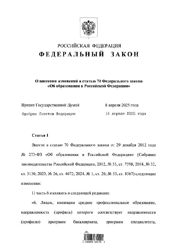 ⚡️Нерадостная новость для будущих студентов: с 1 сентября выпускники колледжей смогут поступать в вузы без ЕГЭ только на близкие специальности. Раньше можно было выбрать любую специальность в колледже, например, аграрную, а при поступлении в вуз перейти на технический профиль, например, программирование. В таком случае требовалось сдавать только внутренние экзамены университета. Теперь же перепрыгнуть с одной специальности на другую не получится. Если вы учились на агрария, то и дальше придётся учиться по этому профилю. В противном случае необходимо будет сдавать ЕГЭ. Так что «халяву» прикрыли. HTN