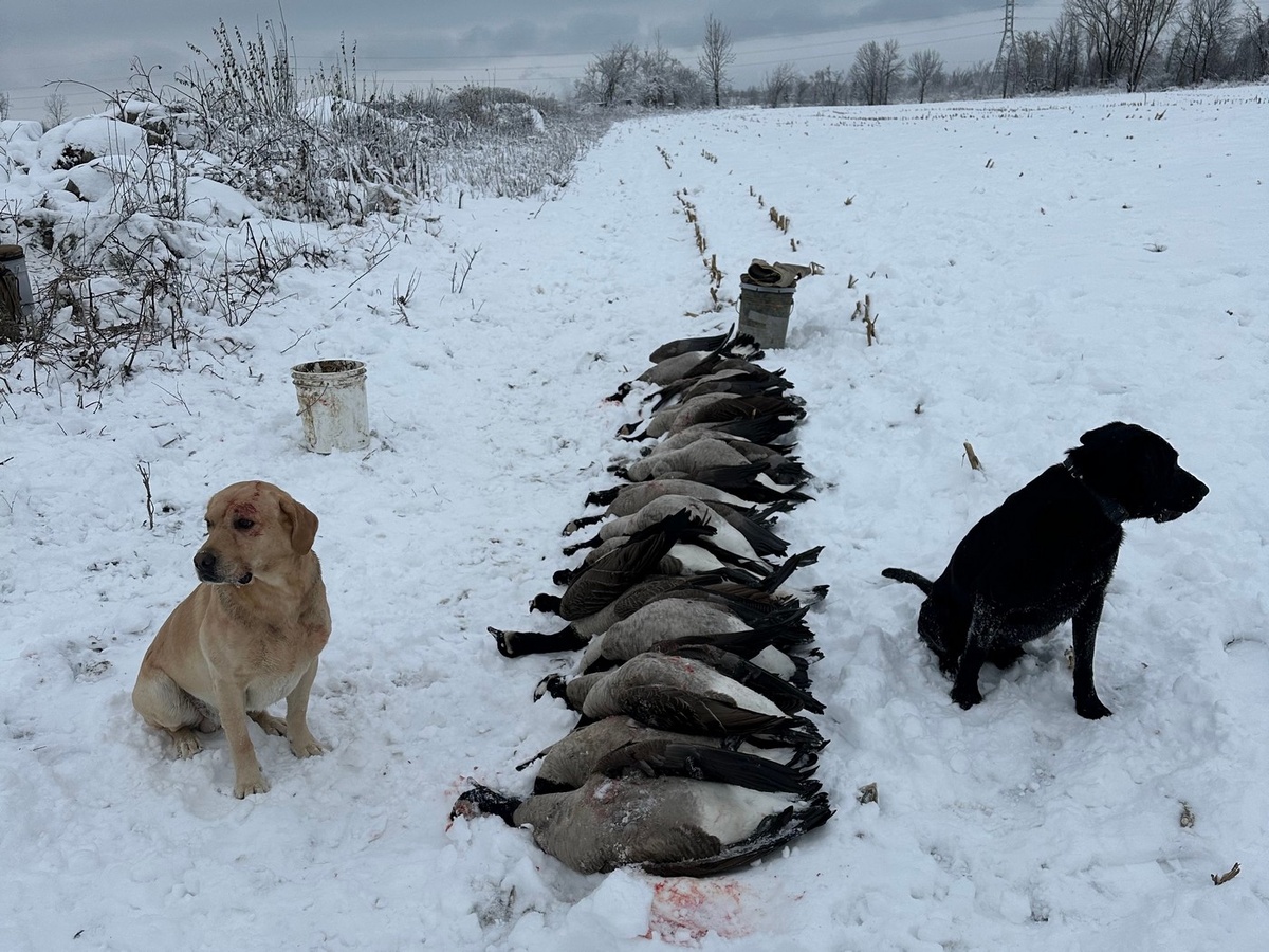 Во время весеннего сезона я работаю аутфитером, сопровождая группы охотников, обеспечивая их экипировкой и создавая условия для успешной охоты. Важную роль в этом играет мой ретривер Фрэнк, который является не просто охотничьей собакой, а титулованным национальным гранд-мастером по водоплавающей дичи (высший и самый престижный титул в системе состязаний охотничьих ретриверов Канады). Фрэнк способен выполнять подачи с управлением на дистанции до полукилометра и дальше, что делает его незаменимым помощником в поле. Весной, когда охота на снежного гуся требует максимальной точности, его навыки особенно важны. После выстрела он мгновенно определяет направление падения птицы, а затем, по моим командам, выполняет поиск и аккуратную подачу добычи. Это не только экономит время, но и позволяет минимизировать количество потерянных птиц, что является важной частью охотничьей этики.