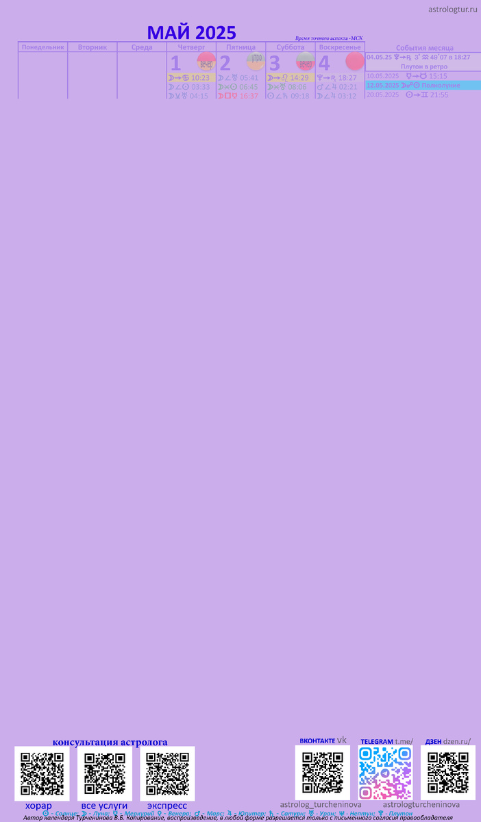 Друзья! На моем канале Дзен в разделе «Премиум» - платная ежемесячная подписка, уже опубликован Астрологический календарь благоприятных/ неблагоприятных дней на май 2025 года.