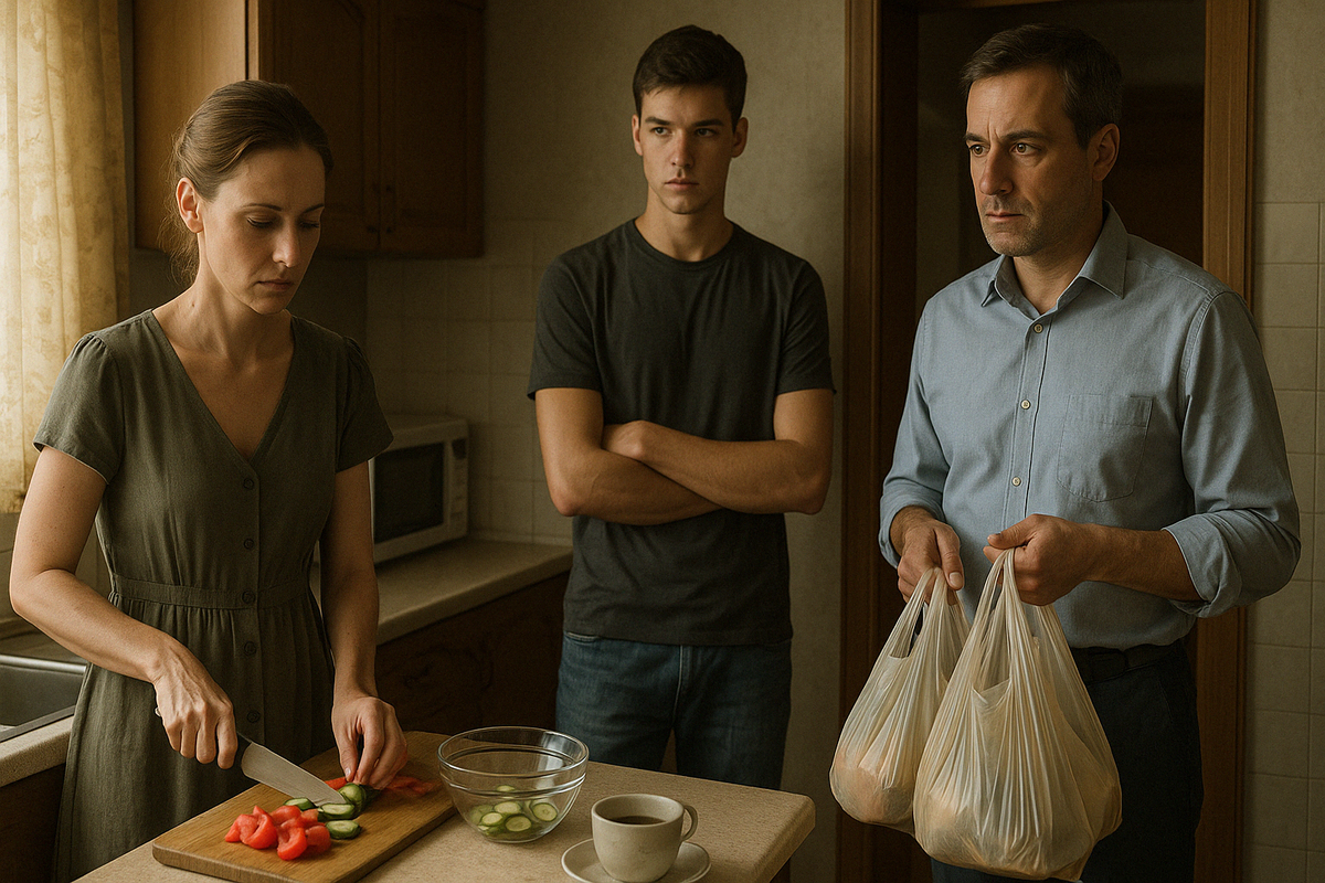 Ирина не успела ответить — в кухню вошёл Сергей с пакетами из супермаркета.