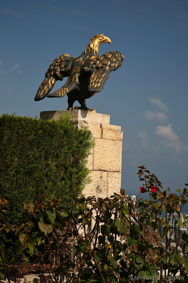 Террасы, будто гигантские ступени, спускаются от золотого купола к синему морю