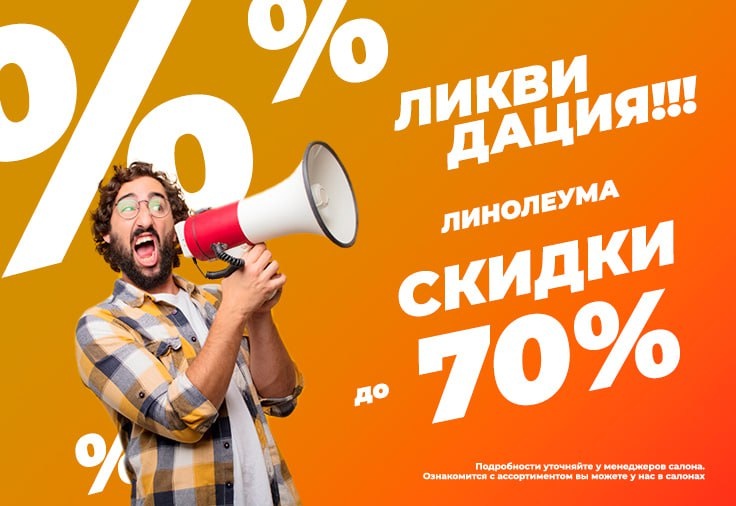 Планируете ремонт? Нужен линолеум? Ловите выгодное предложение! Скидки до 70% на линолеум в наличии в салонах ПолБерри! Подробности на странице акции: Новосибирск: https://polberry.ru/action/138354/ Томск: https://polberry.ru/action/138200/