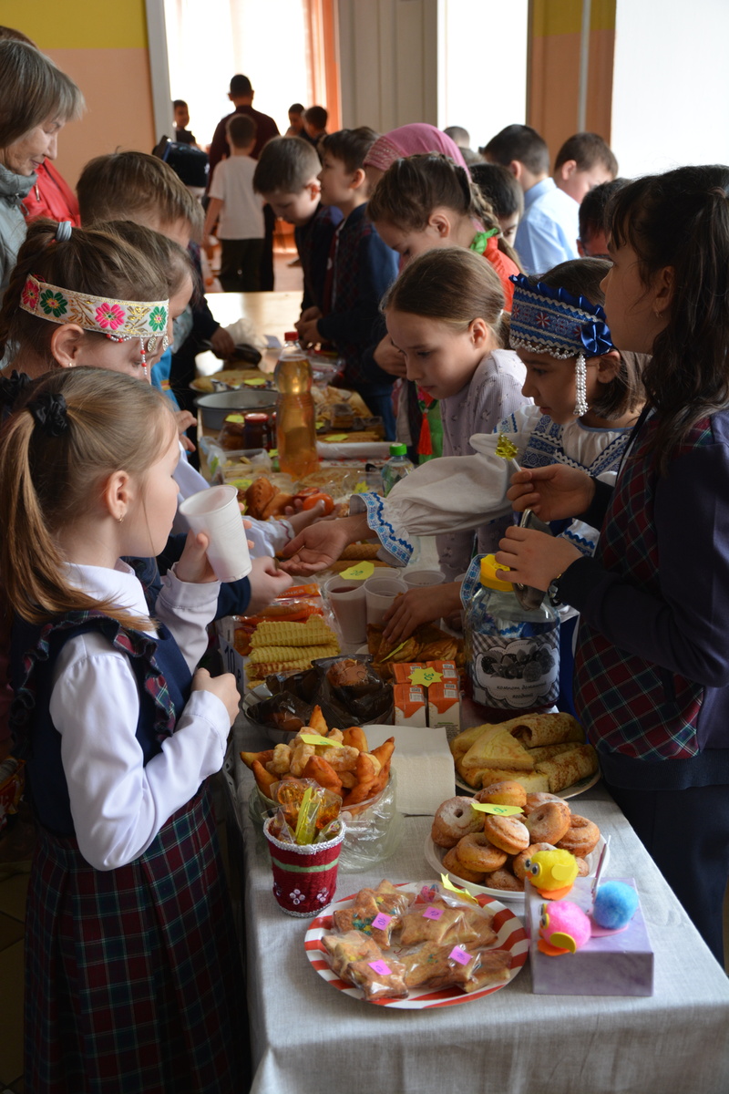 Преподаватели и обучающиеся Лицея № 1 имени Флорида Булякова провели необычное мероприятие. Всем известно, что сбор денежных средств на приобретение необходимых вещей для участников СВО продолжается. Поэтому школьники, их родители и учителя приняли решение организовать благотворительную ярмарку традиционной выпечки, а вырученные денежные средства передать на нужды бойцам. Национальный костюм стал главным украшением мероприятия, к которому, судя по торговым лавкам, готовились серьезно. Марийцы, русские, башкиры, татары… В ярких нарядах, переливающихся в цветах радуги, светились лица юного поколения. Желающих участвовать в сладкой ярмарке и представить свое семейное кулинарное блюдо оказалось предостаточно. Масляные блины, хрустящий хворост, пироги со всевозможными начинками, медовый чак-чак, домашние кексы и вафли, аккуратные «муравейники», ватрушки, куличи с изюмом и глазурью, шаньги и даже марийский «тувыртыш», что означает затопленное в печке молозиво. Классные коллективы с первого