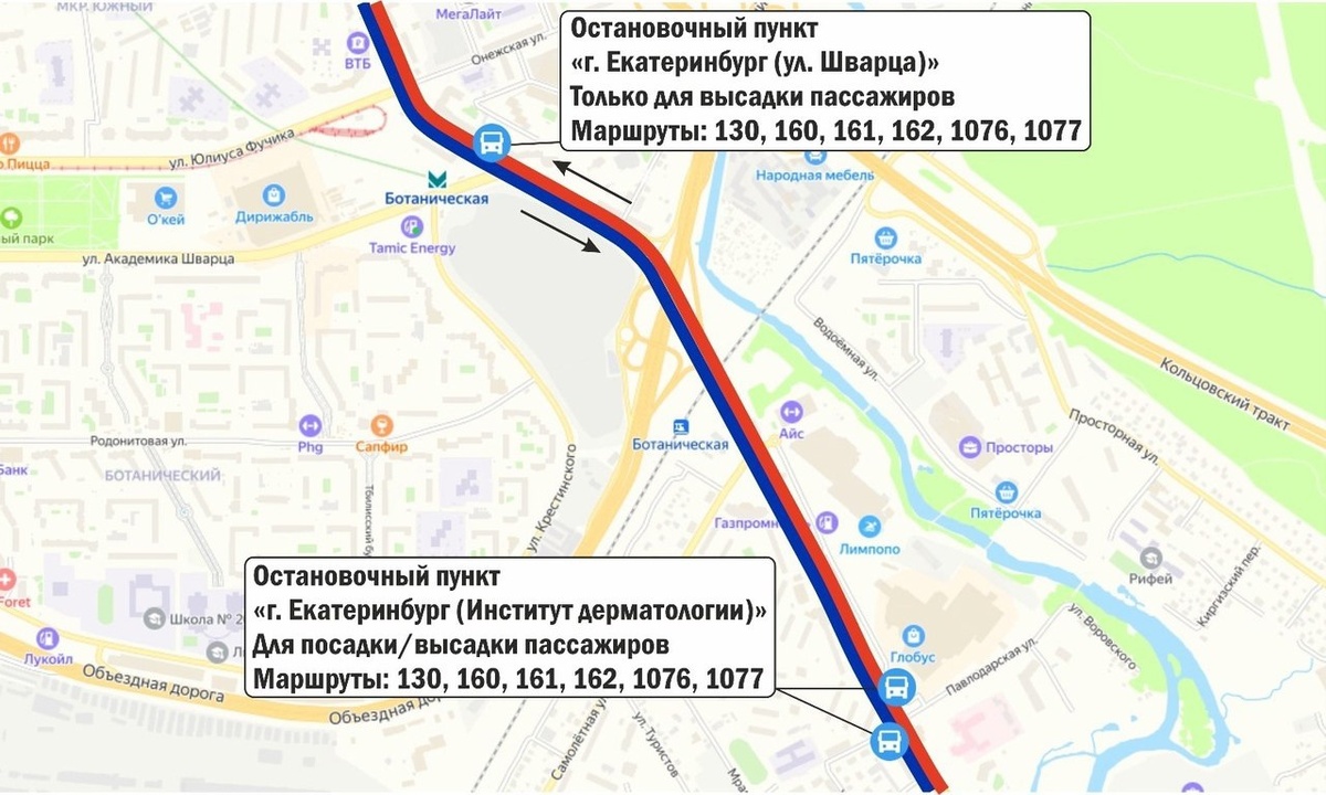 С 1 мая 2025 года внесены важные изменения в работу межмуниципальных маршрутов! В соответствии с приказом Министерства транспорта и дорожного хозяйства Свердловской области от 15.04.2025 № 203, с указанной даты в состав межмуниципальных маршрутов будут добавлены новые остановочные пункты. Это г. Екатеринбург, ул. Шварца (предназначена только для высадки пассажиров) и г. Екатеринбург, Институт дерматологии. Данные изменения затронут следующие маршруты: № 130: «г. Екатеринбург (Южный АВ) — п. Верхняя Сысерть АК» № 160: «г. Екатеринбург (Южный АВ) — г. Сысерть "Автостанция"» № 161: «г. Екатеринбург (Южный АВ) — г. Сысерть "Автостанция" (через п. Октябрьский)» № 162: «г. Екатеринбург (Южный АВ) — п. Октябрьский (Почта)» № 1076: «г. Екатеринбург (Южный А Показать полностью... Мы в соцсетях: Вконтакте - https://vk.com/p.sysert Телеграмм - https://dzen.ru/id/63f23fa633985037574a7d54 Одноклассники - https://ok.ru/p.sysert Дзен - https://dzen.ru/psysert Подслушано Сысерть №1 Наши проек