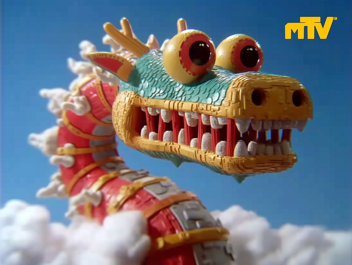 Создано на основе запроса: MTV logo bumper featuring Loch Ness Monster, 1980's VHS retro-futurism