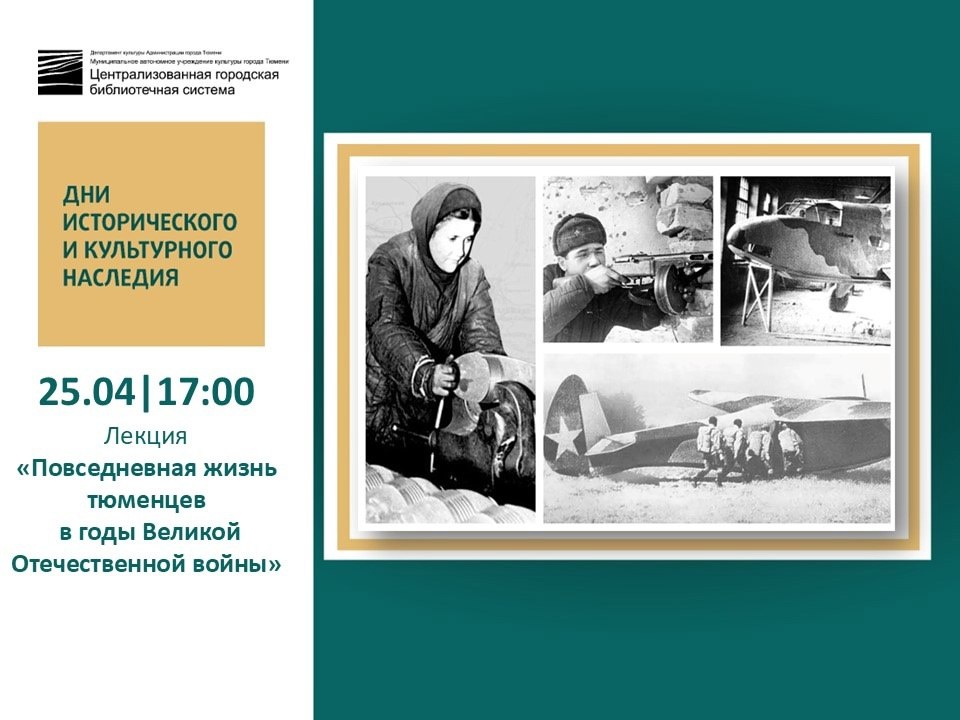 25 апреля в 17:00 в Библиотеке истории города им. А.И. Текутьева (ул. Щербакова, 11) состоится лекция «Повседневная жизнь тюменцев в годы Великой Отечественной войны».