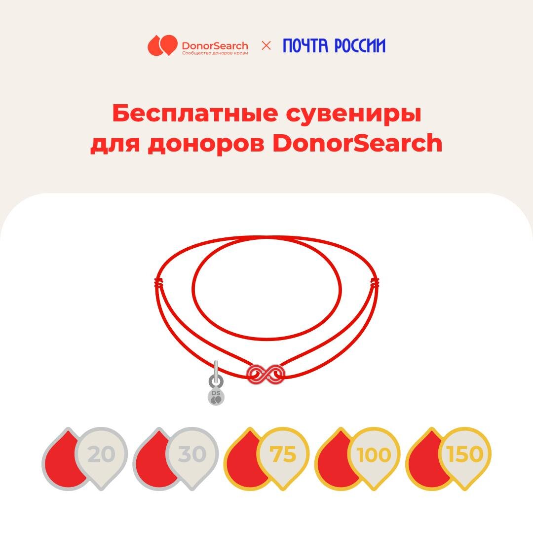 Пока вы ждёте результатов розыгрыша за участие в нашей интерактивной игре, напоминаем о важном проекте в DonorSearch — бесплатные сувениры для доноров 🩸