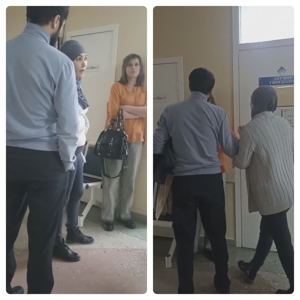 На шум потасовки выходит медсестра и, стараясь избежать дальнейшего конфликта, предлагает женщине в платке пройти в кабинет, напоминая о наличии камер видеонаблюдения. Но даже у двери та не прекращает выяснять отношения: