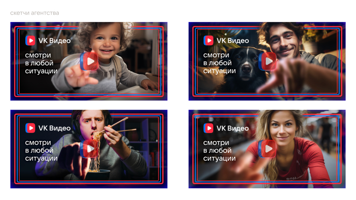 В серии было сразу четыре макета, которые нужно было завершить в те же сроки, что и одиночный key visual. Лицо парня вызывало симпатию у целевой аудитории, но из-за размытого фона терялось ощущение контекста: складывалось впечатление, что герои находятся на улице, а не дома, в кафе или квартире. Рассматривалась
