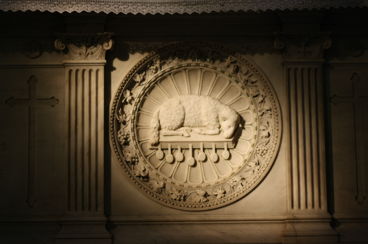 Иоанн видит на богослужении книгу, закрытую семью печатями, которую никто, кроме закланного Агнца-Христа, не мог открыть. Это знак того, что именно Сын Божий двигает мировую историю к ее финалу, и ничья воля не может помешать Его решениям.