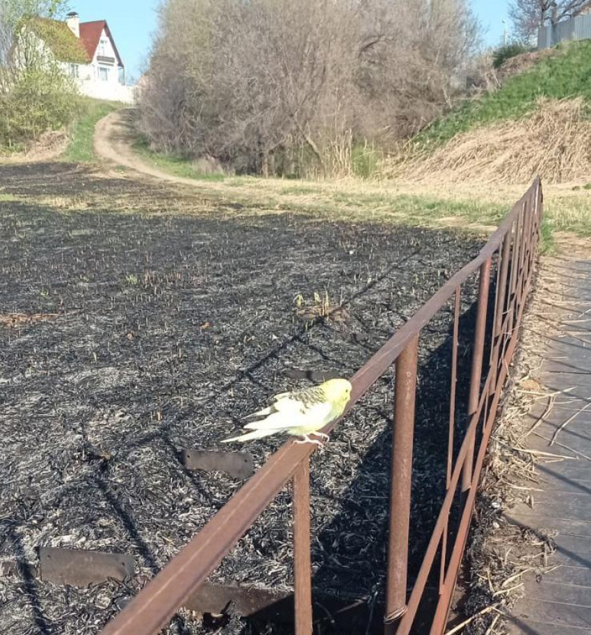 В Камышине в районе недавнего камышового пожара в Кирпичном овраге прохожие сфотографировали симпатичного лимонного попугая.